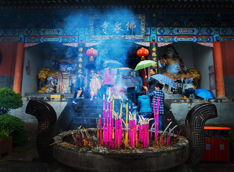 冒着淋漓细雨,河南新闻摄影学会、凤凰网河南频道、福泉酒店等主办、承办方领导,以及全省十八地市近百位媒体人、摄影人,欢聚在千年历史名刹佛泉寺内的礼佛坛。