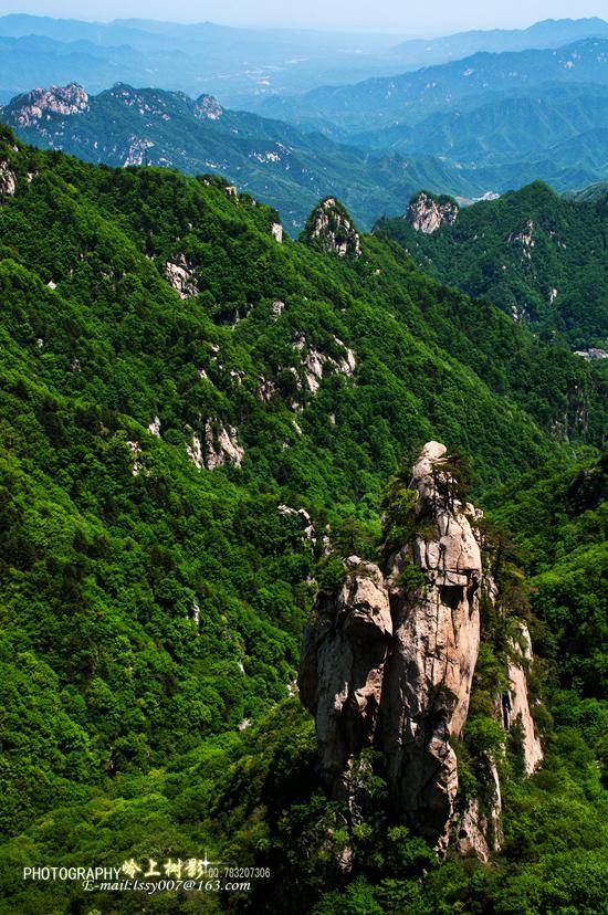 玉皇顶云遮雾绕,千丈崖大气磅礴,凤凰台壮美飘逸,姐妹峰洒脱舒展,白牛城雄浑苍郁,神指峰直插霄汉,和合峰亲密无间……导游介绍说,尧山三十六处名胜,七十二个景点,每一处都绮丽如画,每一景都有动人的故事和传说。六月雪的优美,青丝瀑的凄婉,卧美人的缠绵……都是尧山得以盛名于天下的经典。