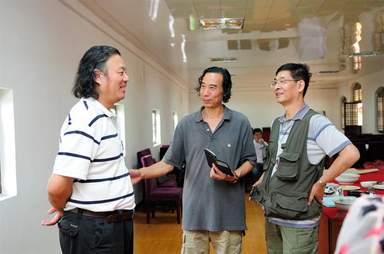 在赵沟旅游接待中心会议室里,艺术家们进行了艺术交流和即兴创作。