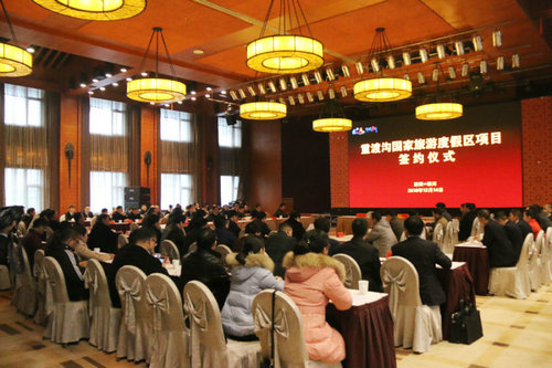 12月14日上午,总投资50亿元的重渡沟国家旅游度假区项目签约仪式在栾川县隆重举行,标志着重渡沟国家旅游度假区项目正式签约落户栾川。洛阳市人民政府副市长魏险峰,洛阳市旅游发展委员会崔光焱,栾川县县委书记董炳麓及县四大班子相关领导,重渡沟风景区有限公司董事长陆鸿翔及董事会成员出席签约仪式。栾川县相关委局、乡镇、景区负责人参加。
