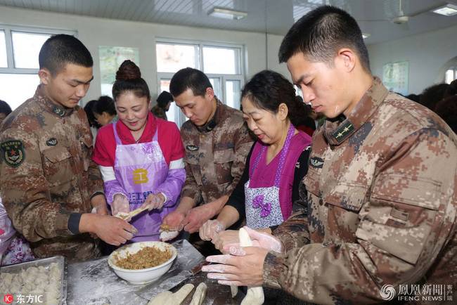 黑龙江黑河,在新春佳节即将来临之际,地处北纬50度线上的边城黑河市百余名大叔、大妈、军嫂、萌娃等以志愿者的身份纷纷来到“黑河好八连”,与戍边官兵一起包饺子迎新春。