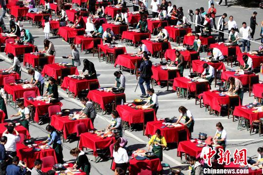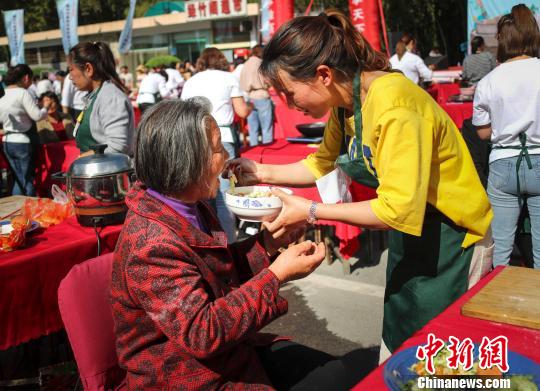 百名农村媳妇现场为婆婆做“长寿面”。 王中举 摄