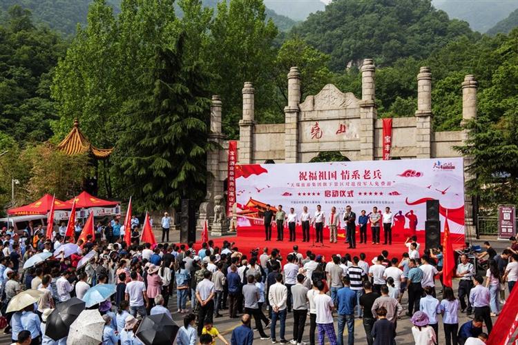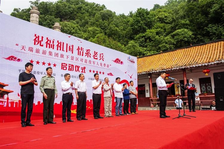 为深入贯彻落实习近平总书记“让军人成为全社会尊崇的职业”的重要指示精神,进一步提升军人职业荣誉感和尊崇感,展现天瑞旅游集团股份有限公司对现、退役军人的关怀及旅游企业的责任和担当,2019年5月18日,由河南平顶山市退役军人事务局、鲁山县人民政府、天瑞旅游集团股份有限公司共同举办的“祝福祖国·情系老兵—天瑞旅游集团旗下景区对退役军人免费游”启动仪式在尧山风景区隆重举行。