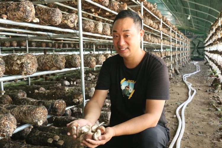 有钱没钱,回家过年。这是鲁山人自古以来的习俗。今年春节前,朱长军放下外面生意早早回家过年。然而和其他人一样,一场疫情把他隔在了家中。 “有时想想这就是天意。” 朱长军笑着说,在家防疫的日子里,有人联系他回乡创业种植香菇。村党支部书记王杰也给他讲了在家创业的好处,特别是种植香菇,政府扶持力度大,让朱长军听得心里痒痒的,当即与好朋友霍建相取得了联系。 霍建相是驻马店泌阳县人,有着多年的香菇种植经验。霍建相对朱长军的想法大加赞赏。于是说干就干,朱长军在荡泽河畔随即流转土地150余亩,注册成立了平顶山三悦农业有限公司,并首期投入资金120万元,不到两个月建设了6个香菇大棚。 大棚香菇生长快,摆放菌棒后不到俩月便产出了香菇。之后朱长军跑市场,联系客户,加之此前开公司中认识人多,致使销售效果特别好。 为提升香菇品质,保证出菇率,朱长军就不断探索香菇种植技术,最终打破传统模式,建设了一年四季都可出菇的双膜菇棚。
