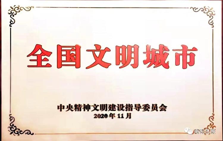 全国文明城市,这是家乡南阳的又一张闪亮名片,它凝聚着一千二百万南阳人的心血,它彰显着这座城市厚重的精神底蕴,它激励着广大南阳人砥砺前行、奋勇争先!