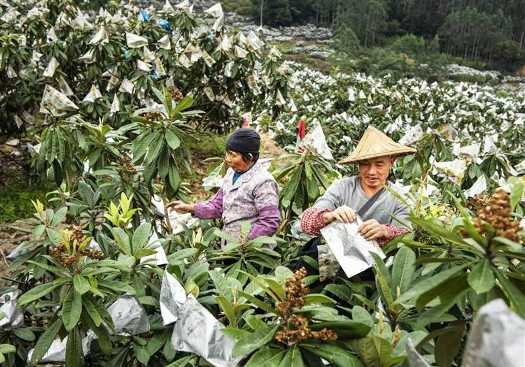 因为早熟,为了防风防冻,也为了防止虫子把虫卵下到枇杷上,村民又摸索出保护枇杷的办法,就是把每个枇杷果都套上纸袋子,套袋子的季节,全村1200多人,人人上阵。