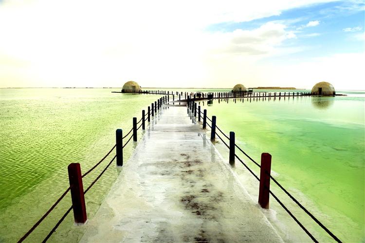 察尔汗盐湖的色彩,我始终找不到一个词来形容。用五彩缤纷、五彩斑斓都有点词不达意。