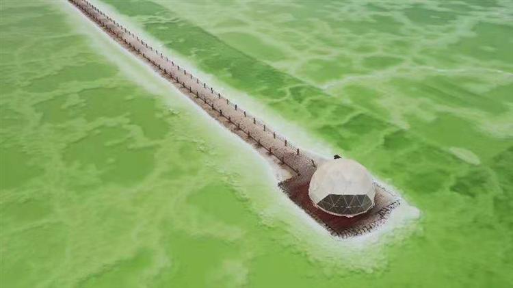 虽然有格尔木河、柴达木河等多条内流河注入湖内,但是,由于高原强烈的太阳的照射,水分还是不断的被蒸发,在盐湖上形成了一层坚硬的盐盖,就是它托起了青藏铁路和青藏公路的绵延千里。