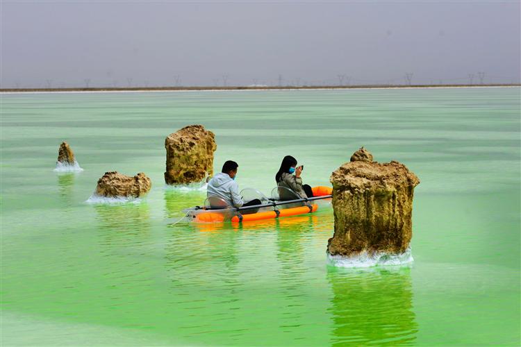 小严说,察尔汗盐湖的储藏深度是60~70m,整个察尔汗盐田的总储量达20多亿吨,可以供全世界人民吃上将近两千年。
