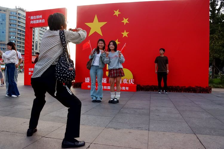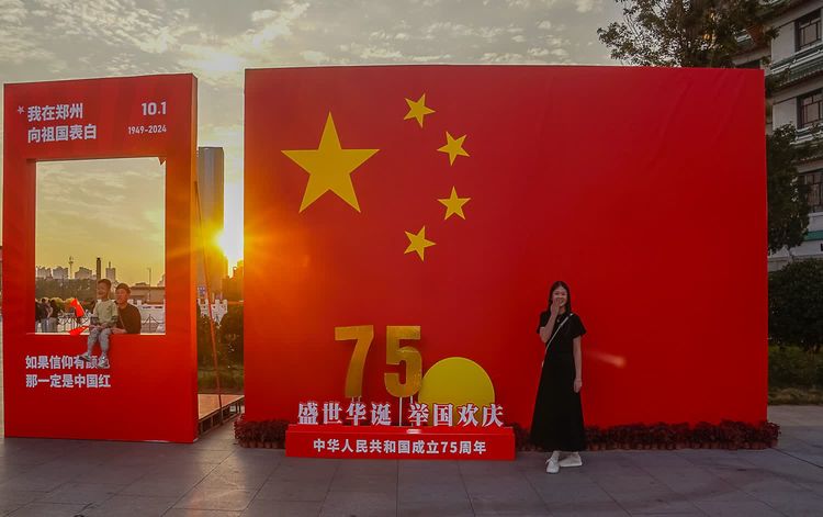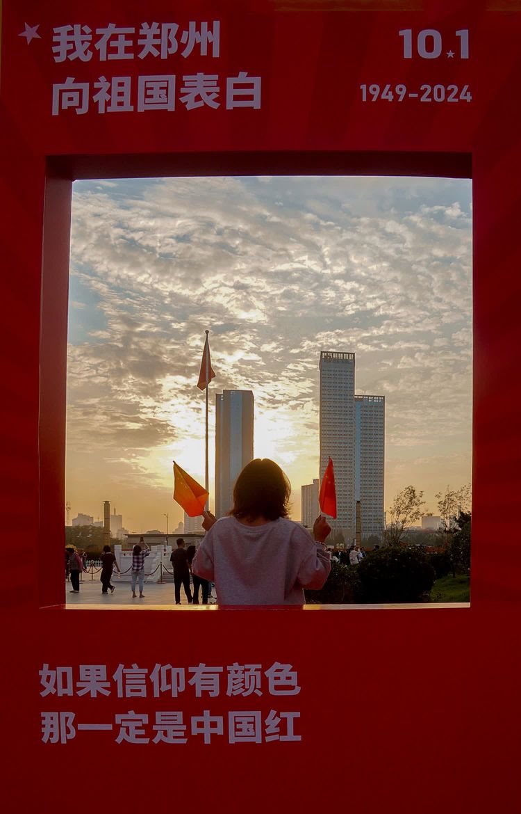 美丽中国行网讯(文/图:大树)距国庆还有三天,河南郑州二七广场已是红旗招展,国歌嘹亮,人声鼎沸。新中国七十五载了,在共产党的领导下,不忘初心艰苦奋斗,前赴后继风雨兼程,方铸就了今日的辉煌强大和平安宁。值此国庆佳节将临,向祖国致以最崇高的敬意,祝祖国国泰民安,繁荣昌盛。愿万里河山永远是赤旗的世界,人民的乐园,愿祖国母亲永远年轻,永远强大,永远是我们心中的骄傲,永远护佑中华儿女!