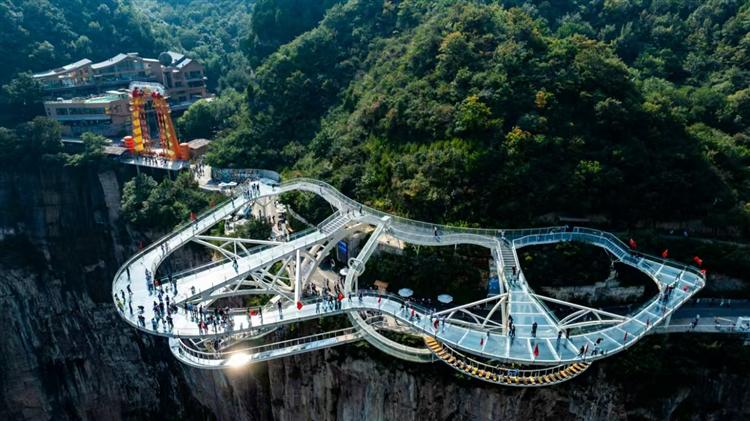 二是国庆营销,持续创新出彩。节日期间,创新推出晒秋新方式,匠心打造晒秋新场景,让游客感受质朴而真挚的乡村情怀;巨幅国旗耀山岗,邀请游客在崖天下跃云桥合力展开长达60米的巨幅国旗,将整个景区的国庆气氛推向了高潮;百名学生共绘百米画卷,用画作献礼祖国母亲75岁华诞;祥云台百人唱响国歌,来自周边的青年群体集聚在祥云观景台上,集体唱响《歌唱祖国》《我和我的祖国》等经典曲目;国庆演艺“白+黑”全天候精彩不断,日不落音乐秀、奥特曼情景剧、国潮变脸、非遗火壶等演艺轮番登场;创新悬崖新玩法,青年群体带着国旗挑战飞拉达溜索、太行蹦极等,通过短视频平台进行发布,形成了国庆氛围打卡的热潮。