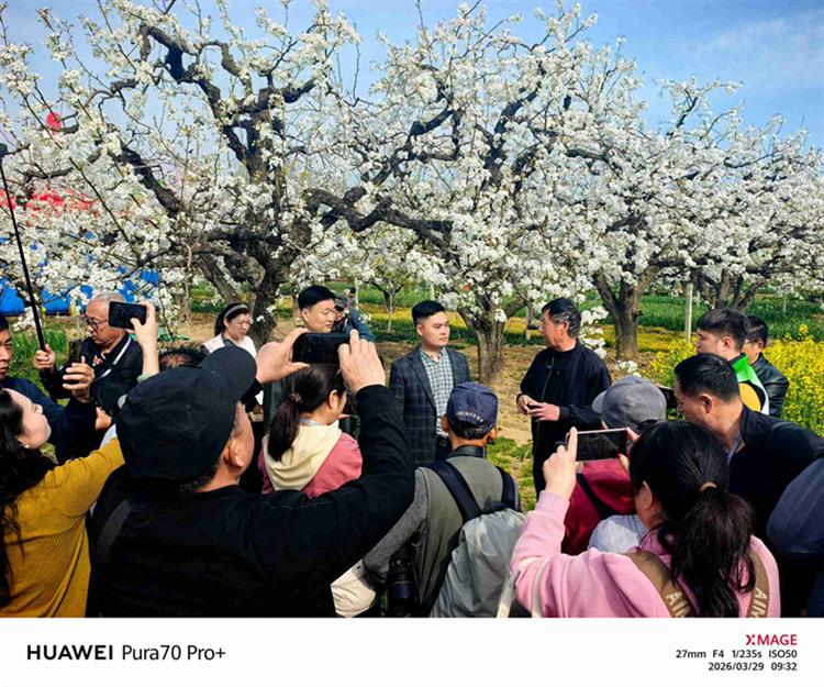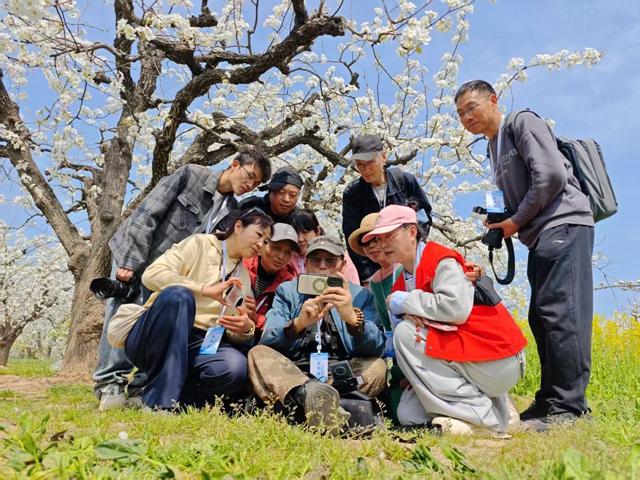 摄影爱好者们怀揣讴歌“大美中原”的创作初心,相聚百年梨园,在花海中交流手机摄影技巧,探讨光影表达手法。大家以方寸镜头为媒,共赏中原春日盛景,共话乡土影像创作,用光影定格乡村美好风光。虬劲古枝缀满莹白,汉服倩影漫步花间,百年梨园故事与国风雅韵相映成画。