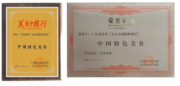 金玉良园园林餐厅荣获《中国特色美食》奖